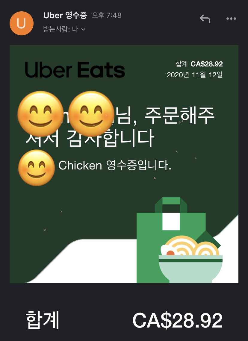 평소 자주 이용하는 우버이츠를 통해