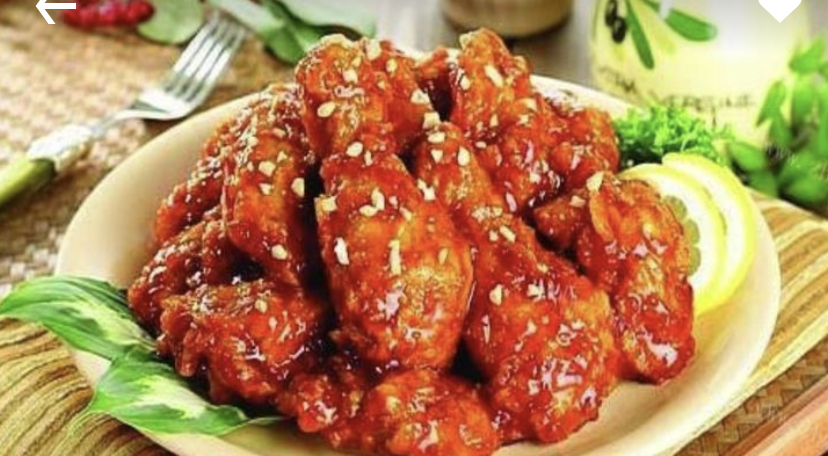 한국 양념치킨(sweet and spicy deep-fried chicken)은 요즘 여기서 아주 난리다