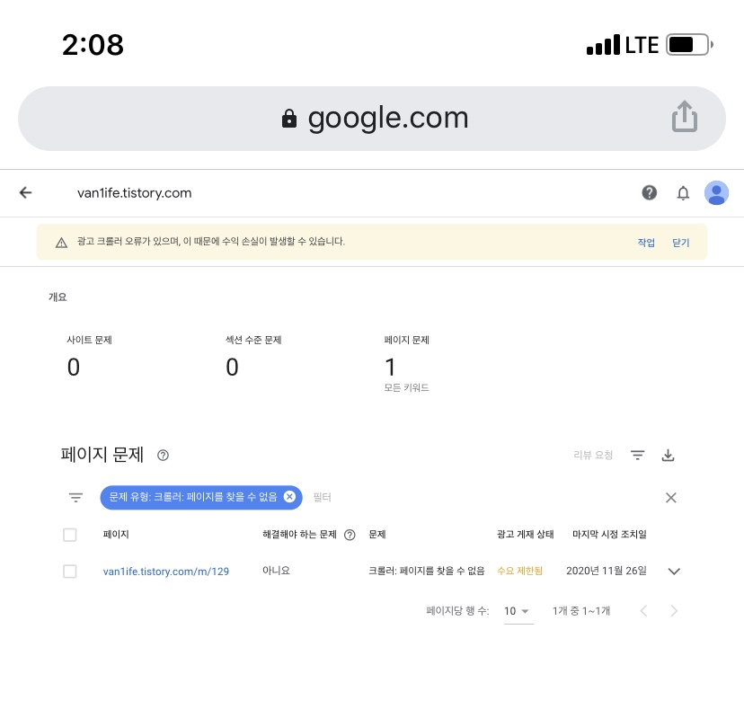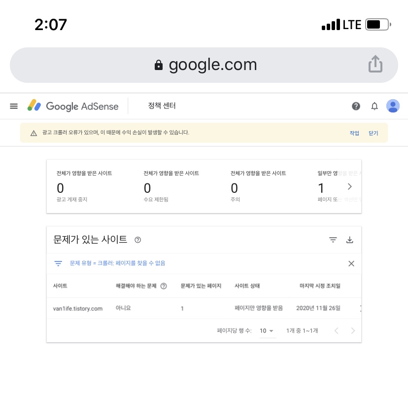 구글 애드센스 승인된지 3개월 정도 지나니 제 애드센스 계정에 “광고 크롤러 오류”라는 메세지가 뜨더라구요