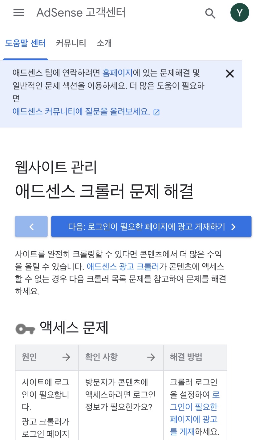 애드센스 크롤러 문제 해결 - AdSense 고객센터