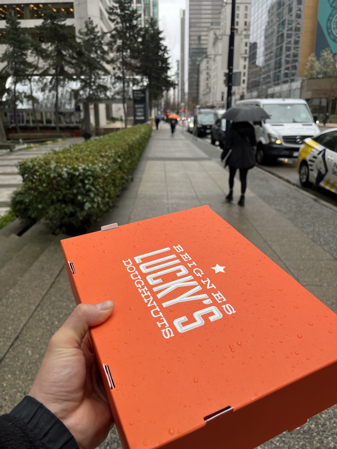 여유있게 커피타임을 갖고 일어나서 근처 우리 부부의 단골 도넛집, 49 Parellel 가서 도넛을 조금 샀다. 근처 와이프가 일하는 직장에 한 박스 작지만 꽉채워서 서둘러 담아 가본다.